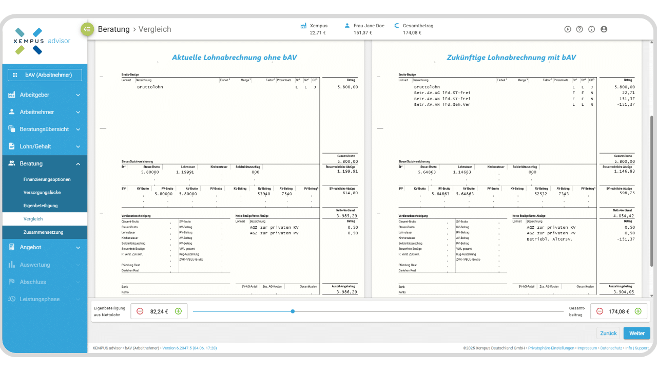 Die Lohnsimulation ist ein echtes Highlight – sie macht das Thema greifbar. Auch die Leistungsphase ist ein starkes Feature, weil sie das Thema Altersversorgung langfristig verständlich macht und die nötige Transparenz schafft. Auf dieser Grundlage können Arbeitnehmerinnen und Arbeitnehmer fundiertere Entscheidungen treffen und die Lösung auswählen, die am besten zur individuellen Lebenssituation passt”, berichtet Stefan Käser. Dabei ist ihm wichtig, auch nach dem Abschluss nah am Kunden zu bleiben und bei entscheidenden Veränderungen die bAV entsprechend anzupassen. Mit digitalen und automatisierten Prozessen funktioniert das ganz einfach und mit wenig Zeitaufwand.
