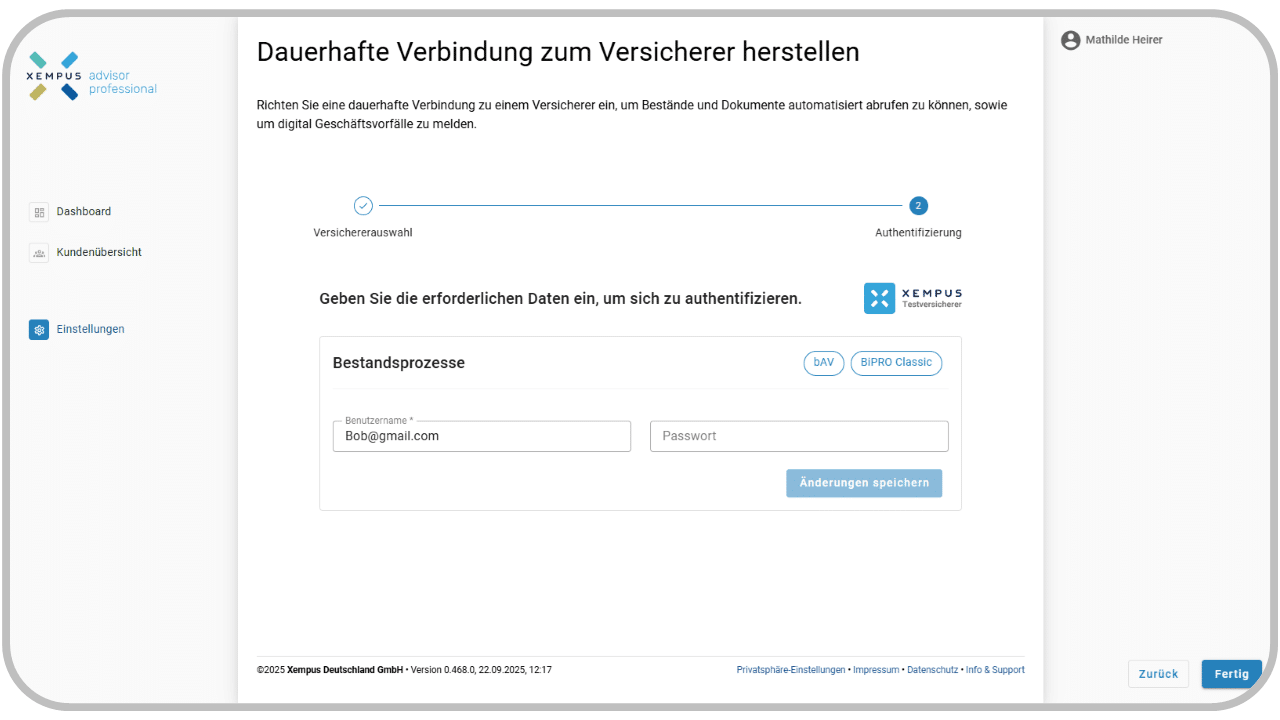 Damit Sie den vollen Funktionsumfang des XEMPUS advisor professional nutzen können, benötigen Sie eine digitale BiPRO-Anbindung zu Ihren Versicherungspartnern.